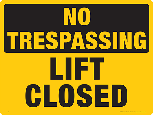 Shop » Lift Sign, No Trespassing/Lift Closed, Yellow w/ Black Imprint, 24″ x 18″