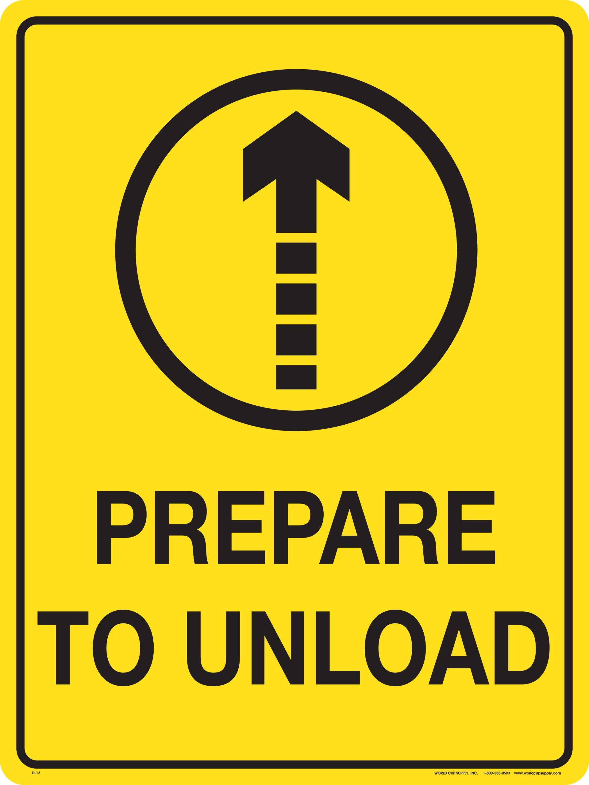 Shop » Lift Sign, Prepare to Unload, Yellow, 18″ x 24″