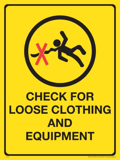 Shop » Lift Sign, Remove Pole Straps From Wrists until Unloaded, Yellow, 18″ x 24″