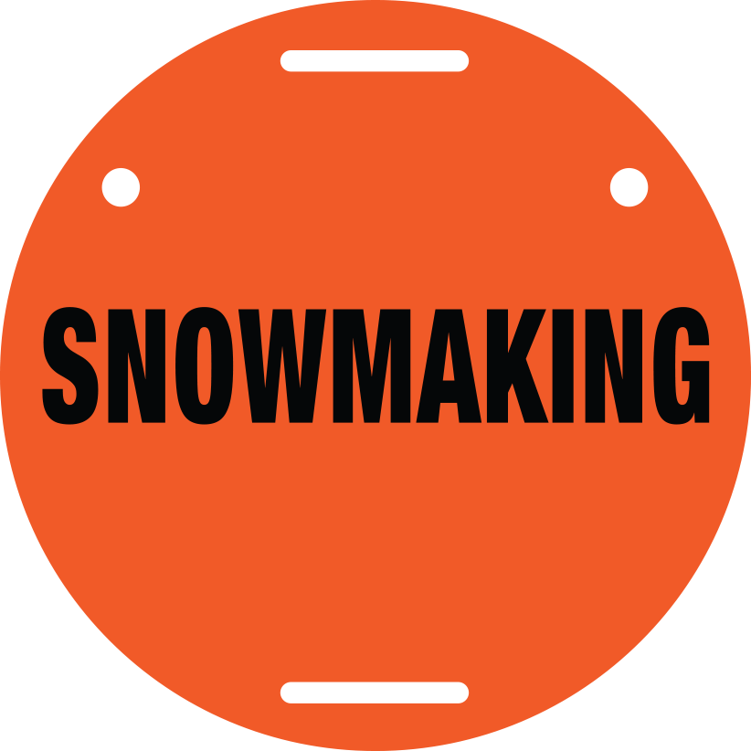 The Snowmaking Marking Disc is another essential disc for resorts and ski areas to have. This disc is used to mark where snowmaking hydrants, hoses, pipes, and fan guns, may be on the slopes. This helps reduce skier and rider collisions with snowmaking equipment that may be present. In addition this disc may serve as a warning that snowmaking may be present in the area, and that skiers and riders should be prepared for such conditions.