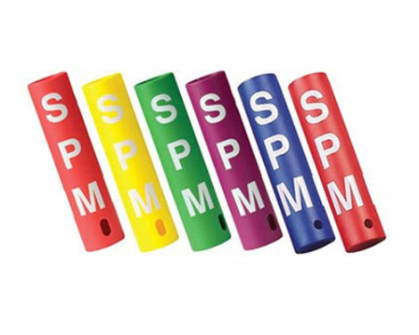 Roll the dice and have the class or child pick the next learning evolution or simply use them to occupy hands during other movement progression. Hint: Unlike balls, they don’t roll when put down or unattended. Offered in Yellow, Red, Green and Blue.