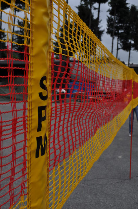 Rolls are constructed of .95cm x .95cm (.375″ x .375″) knitted squares with double reinforcement on top, middle and bottom for added strength, 48″H x 150″L. Available in red, blue, dark green and orange. Also available in 8′ high rolls.